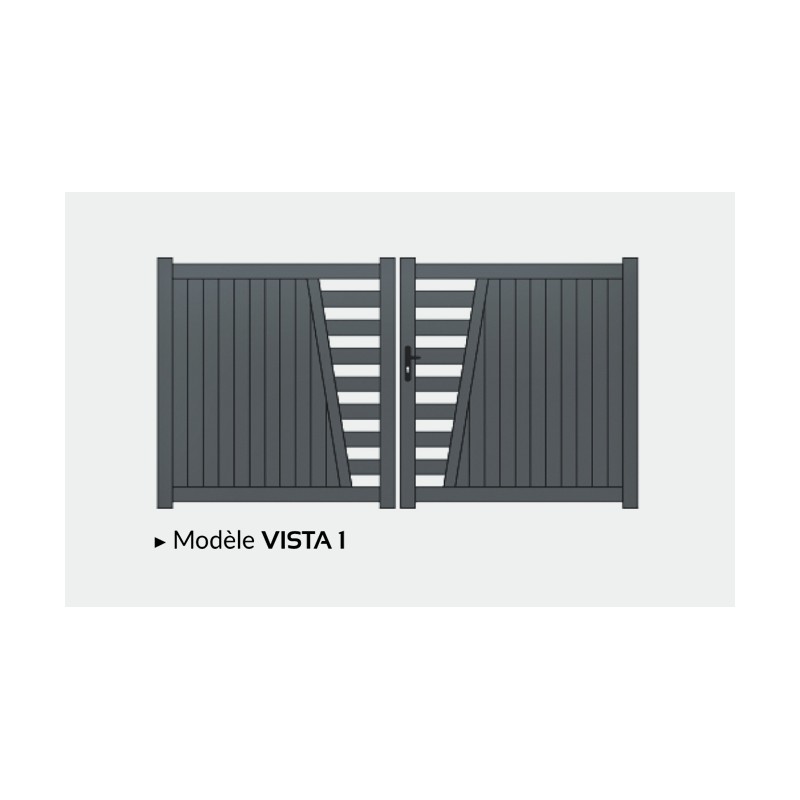 Portail décor avec meneaux inclinés type "V", disponible en pivotant, coulissant et portillon. Assemblage mécanique modulaire.
